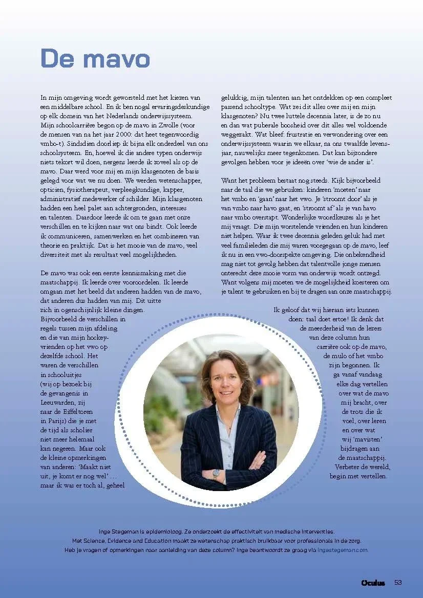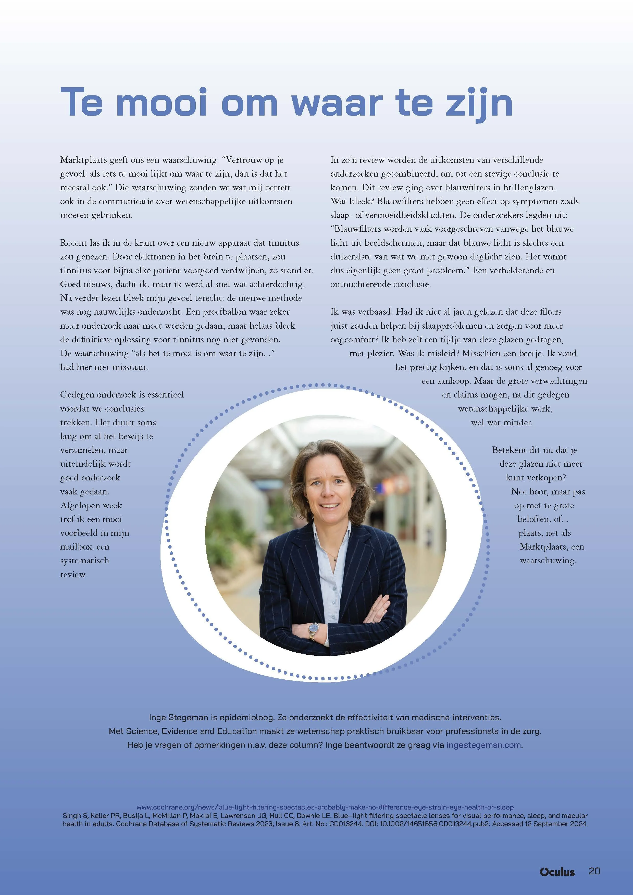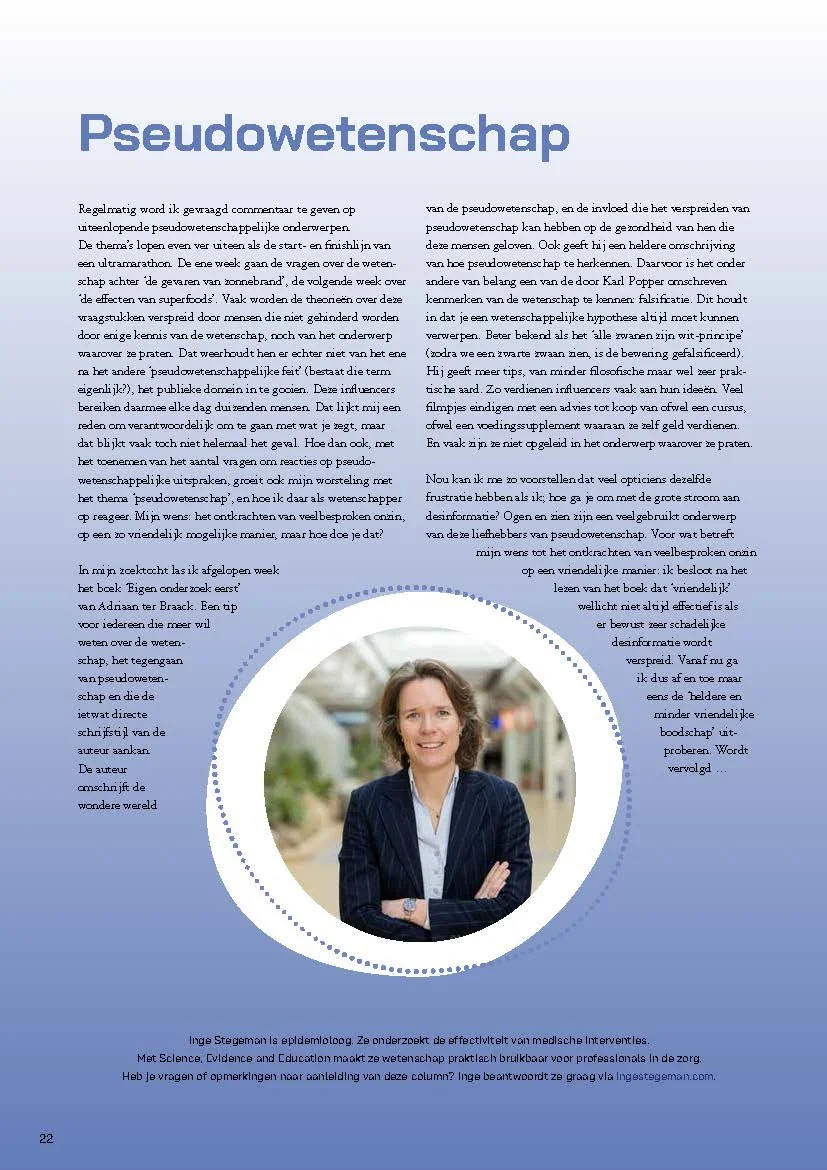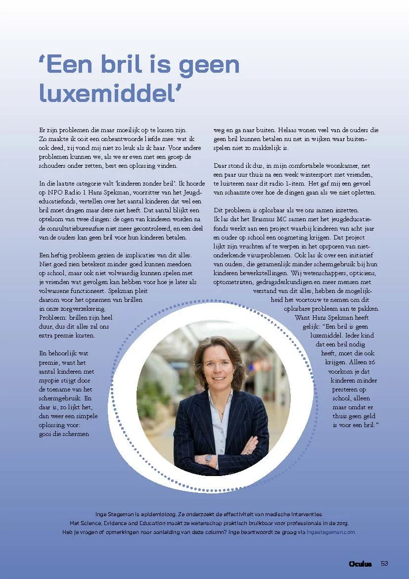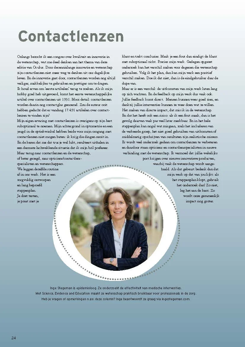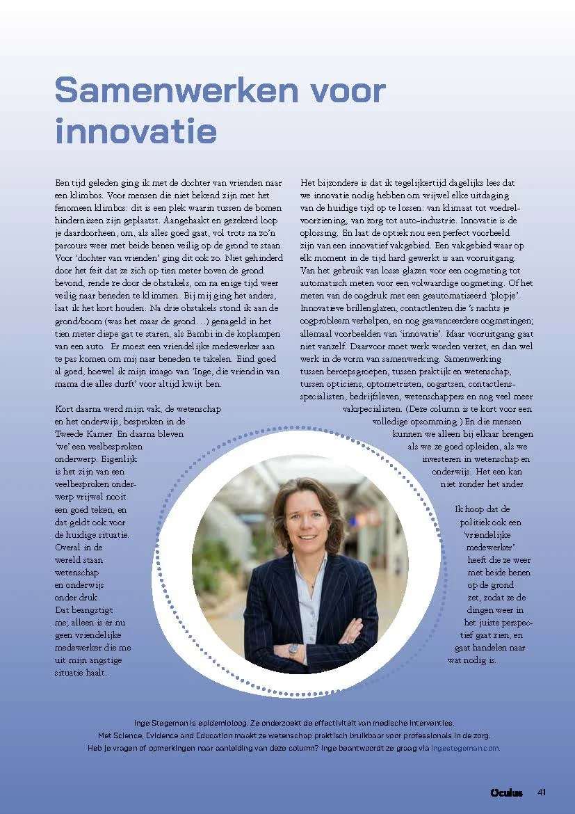 ik schrijf elke 6 weken in het tijdschrift voor de optiebranche ‘de Oculus’